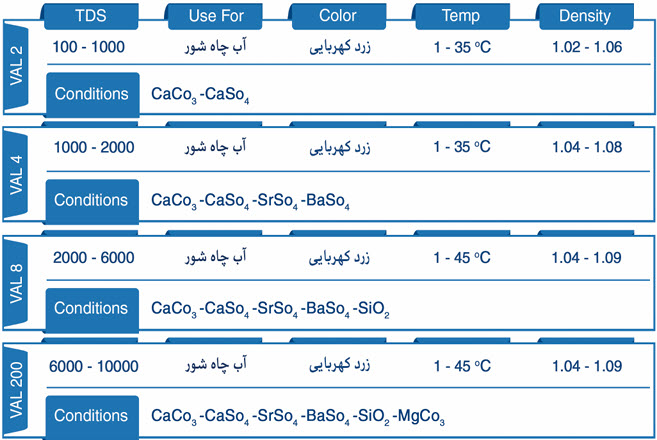 آنتی اسکلانتهای اسیدی سری VAL به طور خاص برای چاه های معمولی طراحی شده اند و به طور مؤثر در