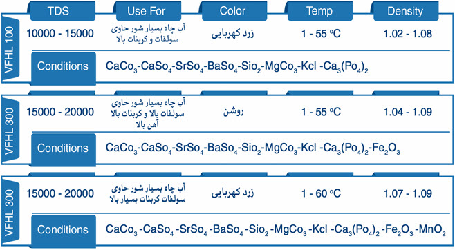 آنتی اسکلانت های سری VFHL به طور خاص برای شرایط سخت آبهای شور طراحی شده اند و قادرند به طور مؤثر