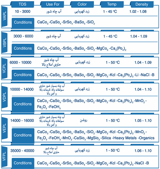 آنتی اسکلانت VFL با ویژگیهای خاص خود در دماهای متغیر عمل کرده و به طور خاص برای شرایط عملیاتی
